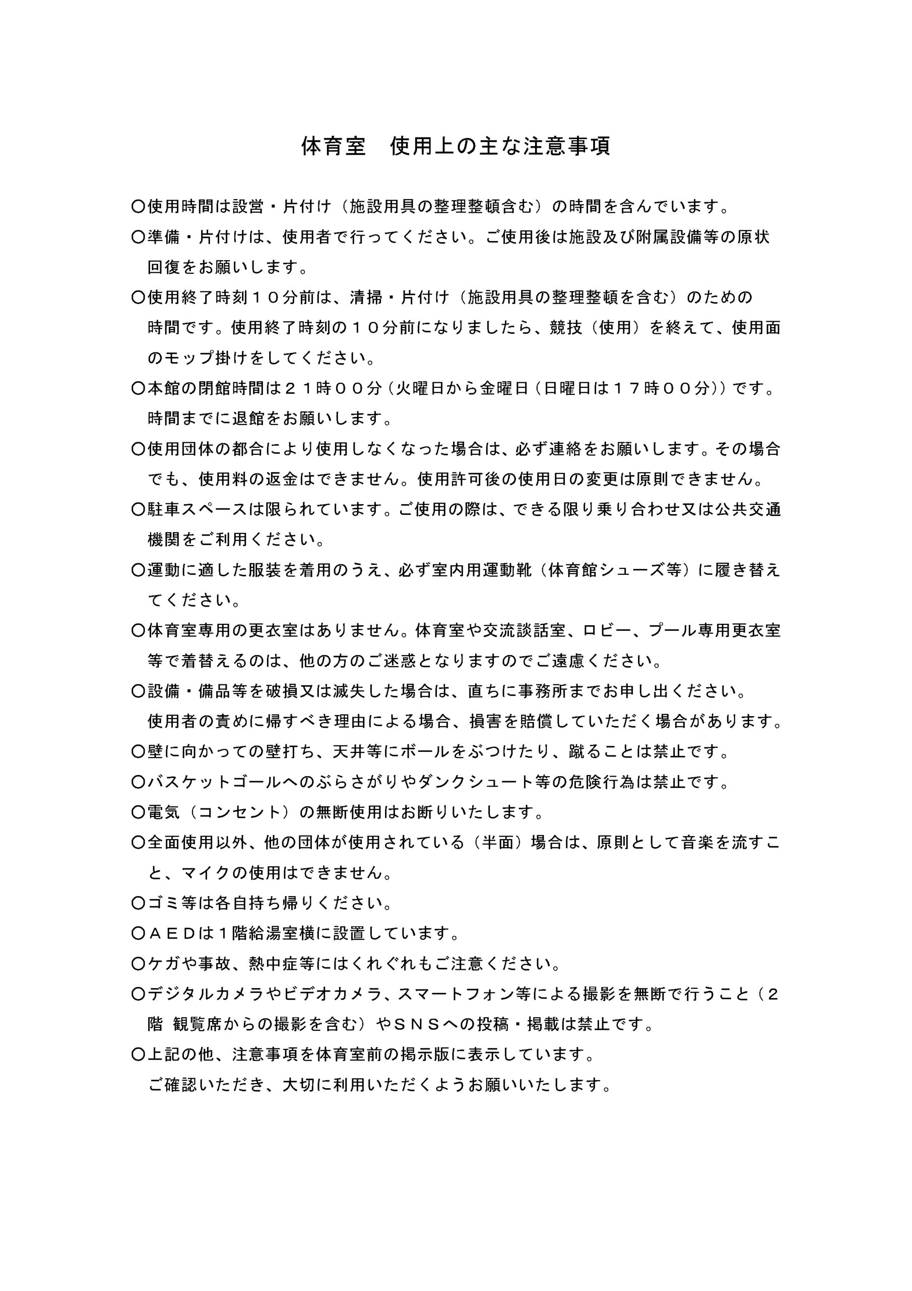体育室・温水プールの使用申請書です。体育室、温水プールを団体利用をする際にご活用ください。